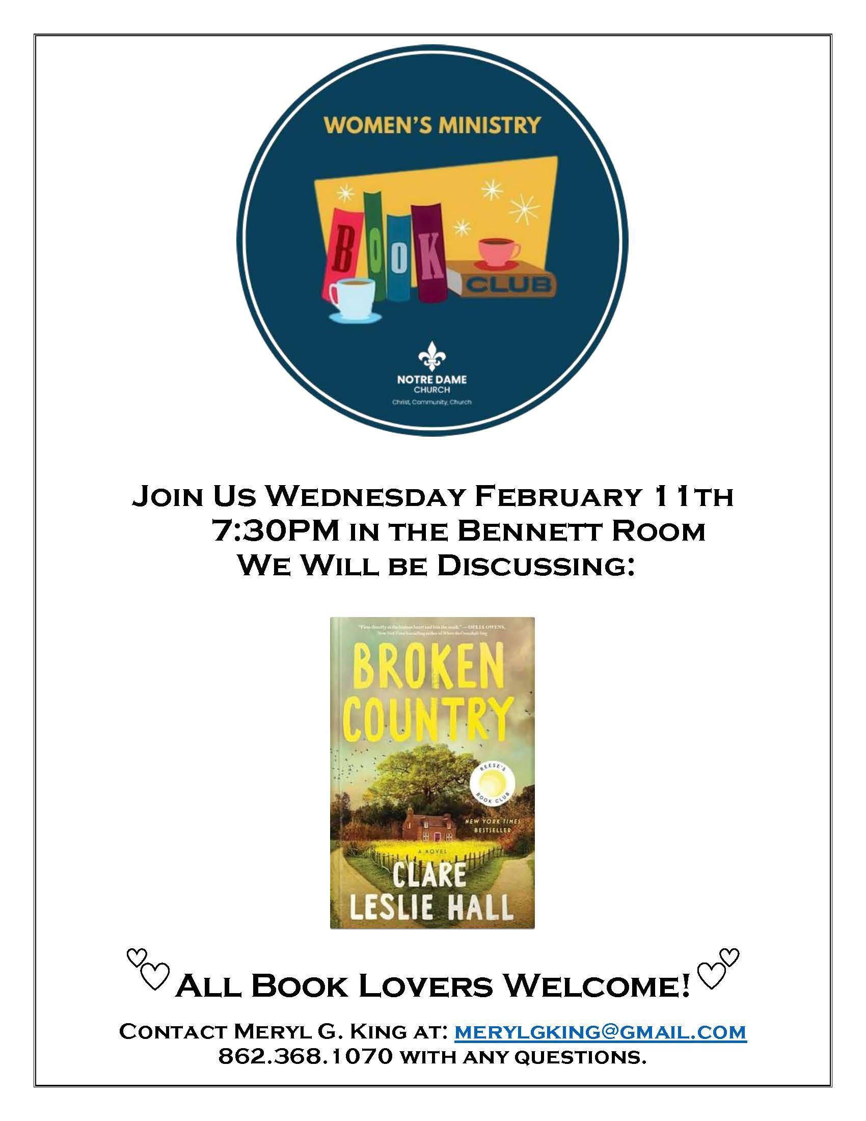 7:30pm Women's Ministry Book Club - Bennett Room